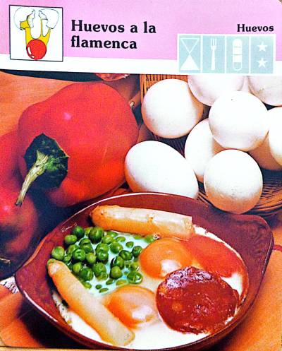 Nota: Los huevos a la flamenca admiten muchas variaciones. El procedimiento es siempre el mismo y la diferencia consiste en los ingredientes que se empleen: judías verdes, patatas, jamón serrano, longaniza, etc.