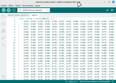 Con esto tendremos en nuestro portapapeles los datos de la muestra de audio como un array de datos formateado para el lenguaje C usado por la ESP32. Es hora de abrir el IDE de Arduino.